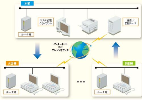 - 単体利用・親子接続・店舗内(LAN)構成、本部~店舗間のパッケージソフトもご用意。